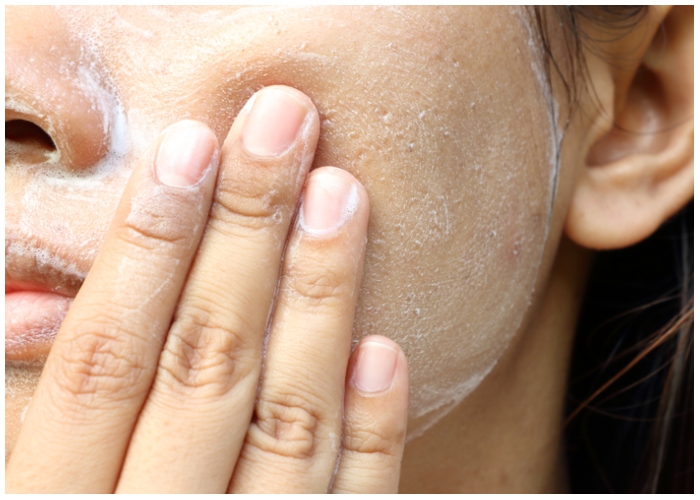 Instead, opt for gentle chemical exfoliants, such as lactic acid or polyhydroxy acids (PHAs), a few times a week. These help remove dead skin while supporting hydration.